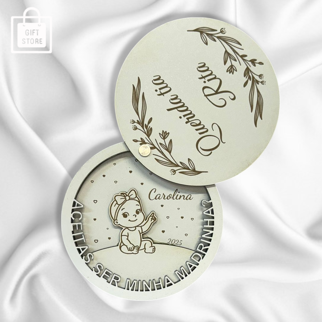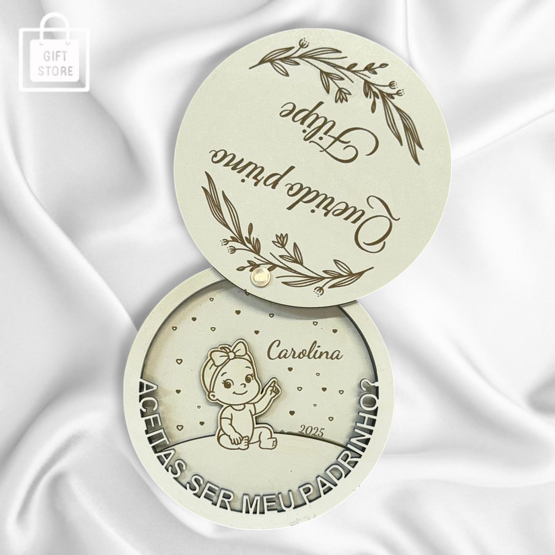Surpreenda de forma original com a nossa Medalha Personalizada em Madeira, pensada para convites de padrinhos, madrinhas, familiares e amigos especiais.
