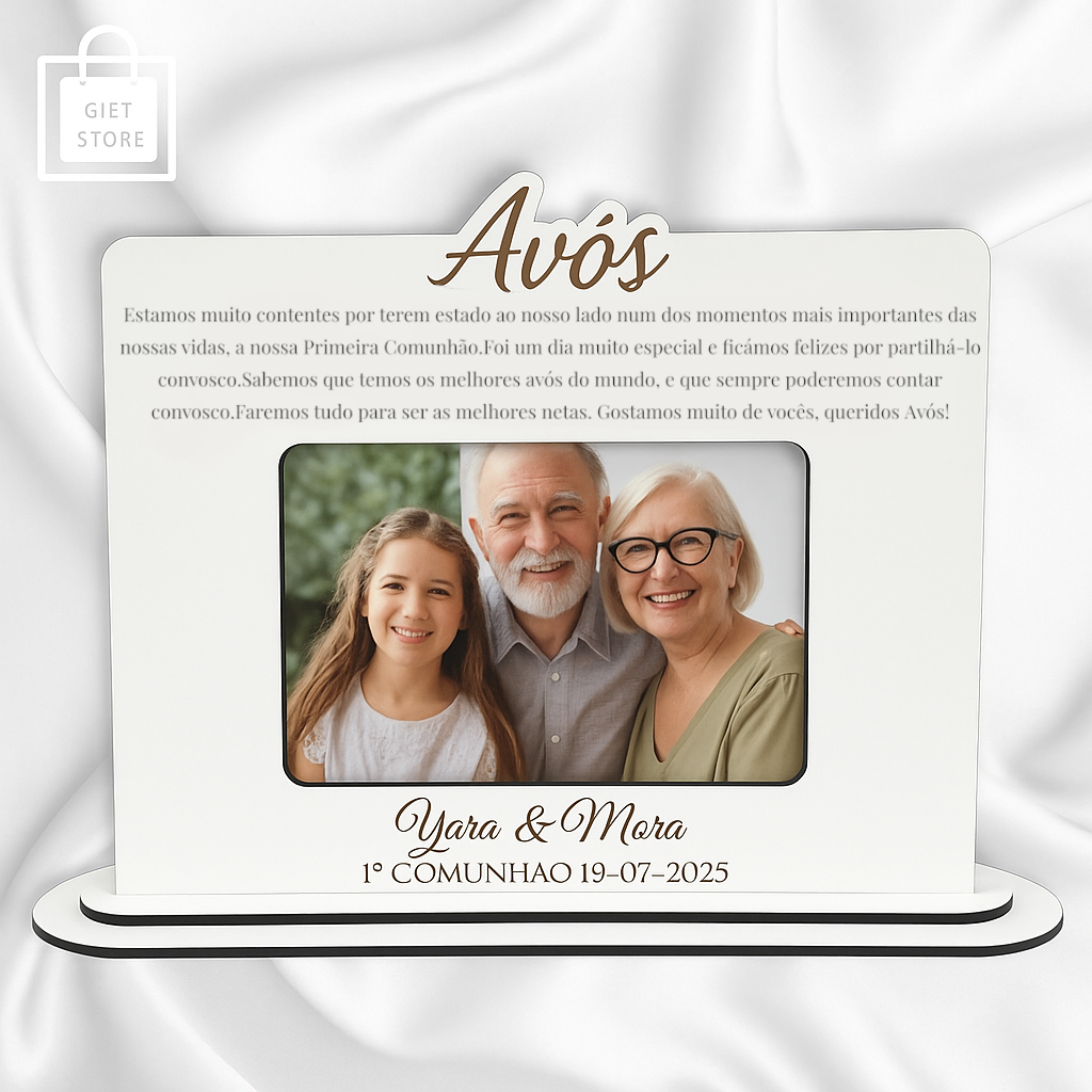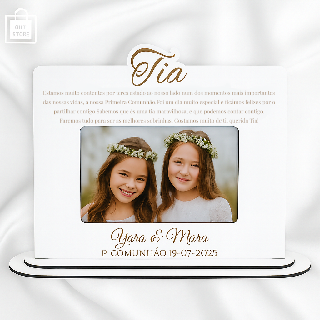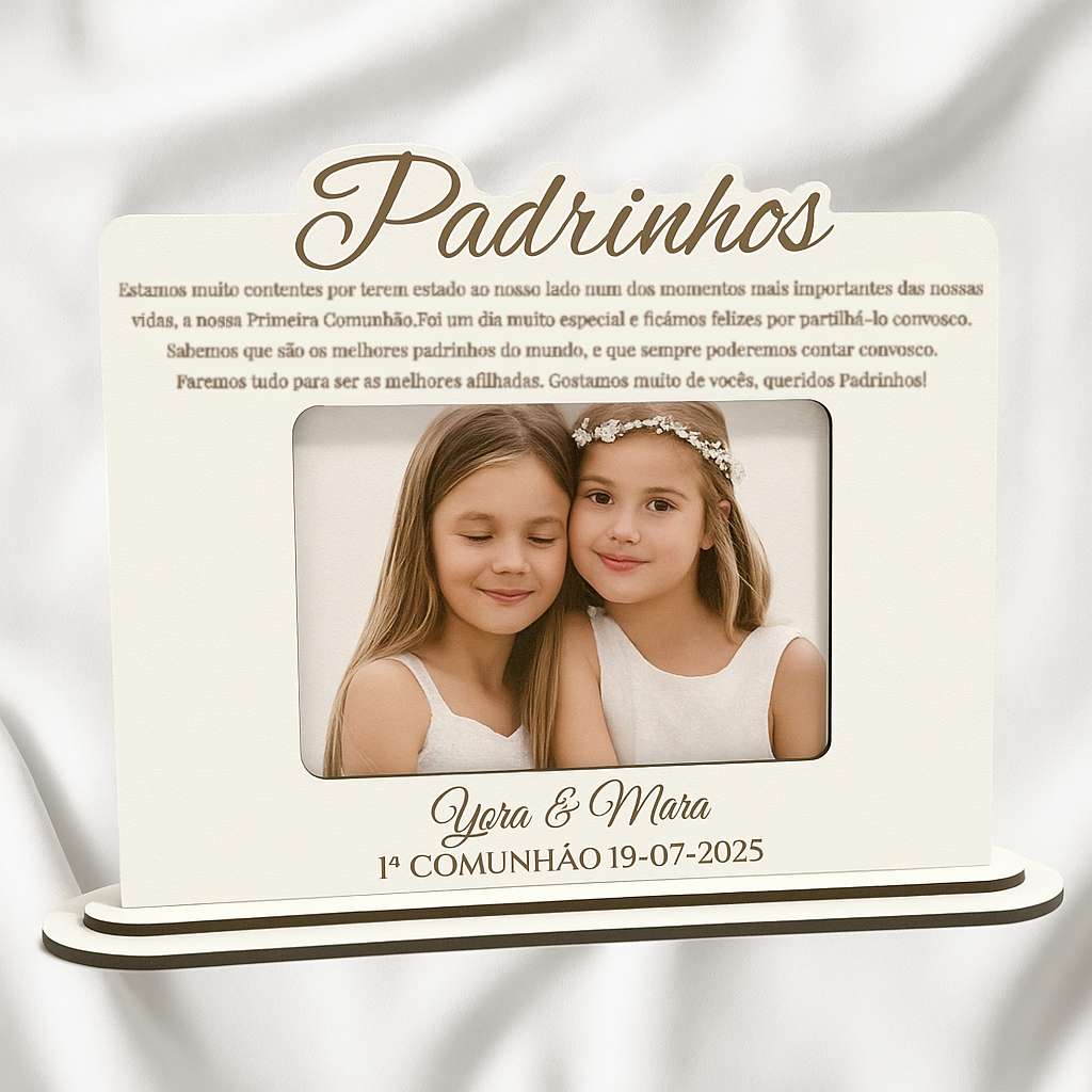 A nossa Moldura Personalizada em Madeira com Mensagem é o presente perfeito para eternizar momentos especiais como a Primeira Comunhão.